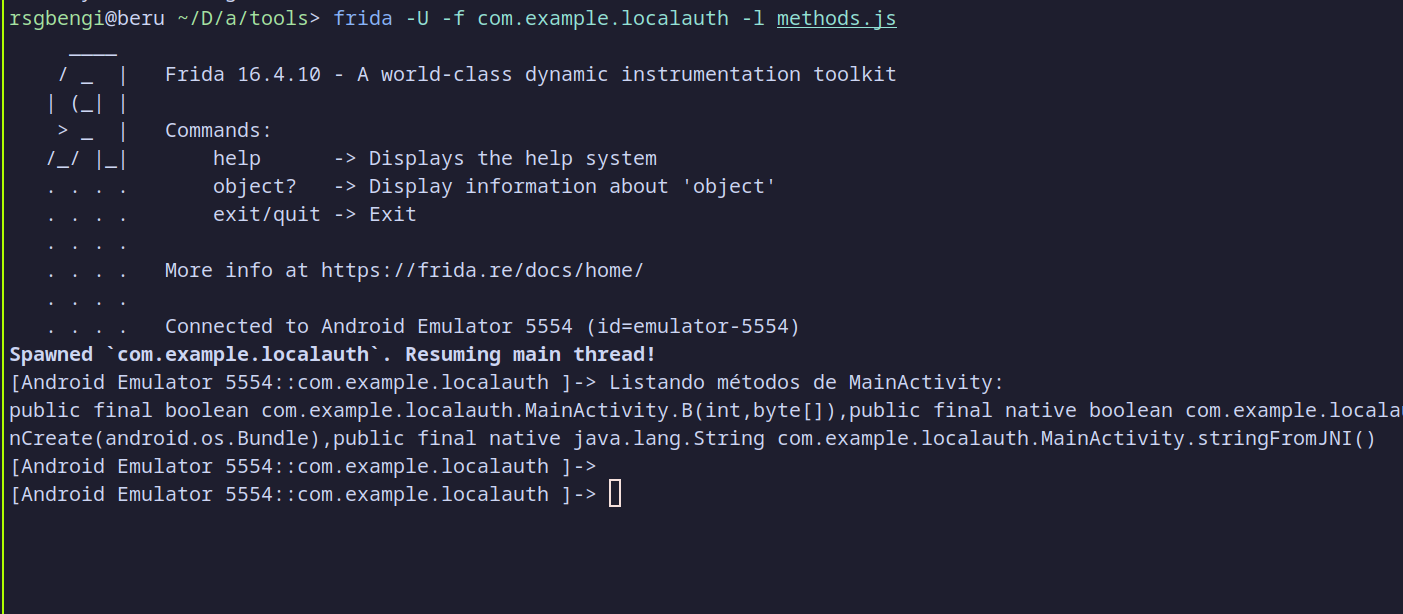 If everything worked, Frida should attach to the app without triggering an exit, and you should be able to interact with the app normally. The app will continue running even with Frida attached, confirming that the modified detectFridaAndExit function no longer executes its detection logic.