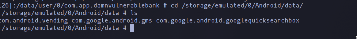 /data/user/0/com.app.damnvulnerablebank/files) is used for storing persistent data that should survive through the app’s lifecycle. Unlike the cache, data here is not automatically removed by the system. - obbDir: The OBB directory (