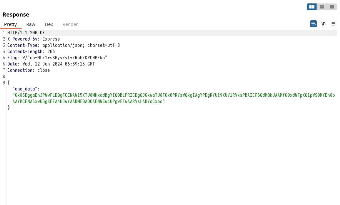 console.log("Encrypted Data: " + encryptedResponse); // Log encrypted response data