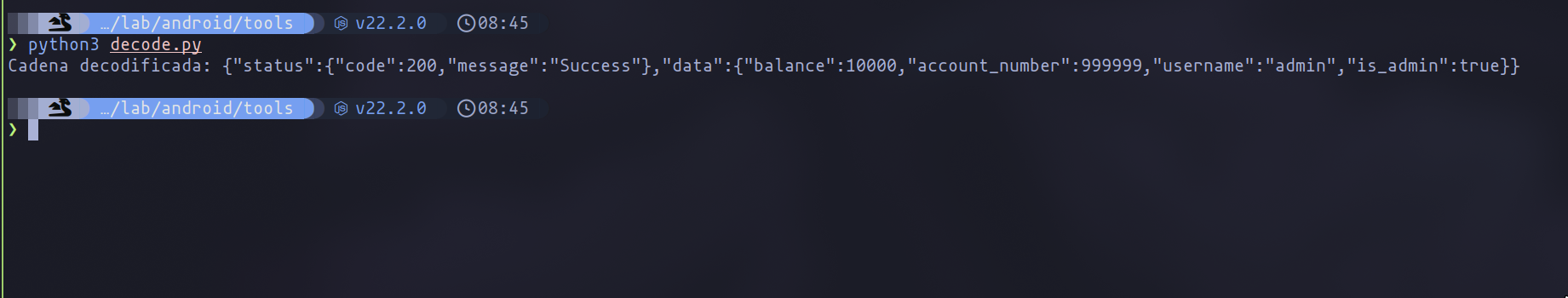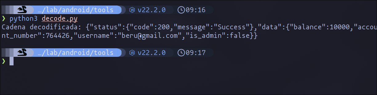 However, for some reason, when I change the user’s JWT, the data does not appear in the terminal using Frida. Therefore, I decided to develop a small Python script to decode the data. This way, I can get the encoded data from a response after changing the JWT and decode the information.