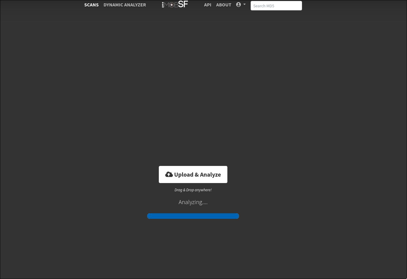 - Upload Your APK: Click on the upload button and select the APK file you want to analyze. MobSF will start the static analysis automatically once the APK is uploaded.