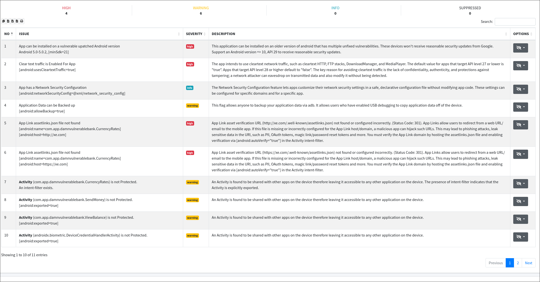 - User-Friendly Reports: After completing its analysis, MobSF generates comprehensive and user-friendly reports. These reports highlight the identified vulnerabilities and provide recommendations for remediation, making it easier for developers to enhance the security of their applications.