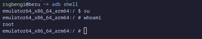 Once the emulator is rooted, you can verify root access by running the following commands: