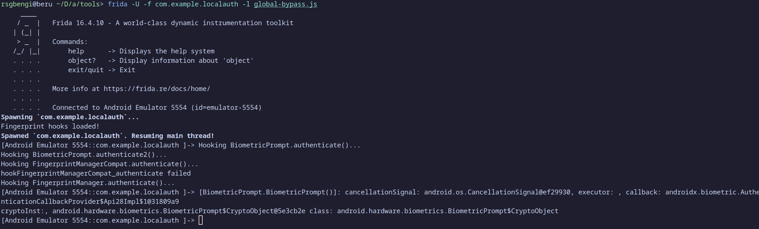 Now that everything is set up, we’ll use Frida to bypass the local authentication in the app. This process is straightforward and allows you to test whether the application is vulnerable to this type of attack.