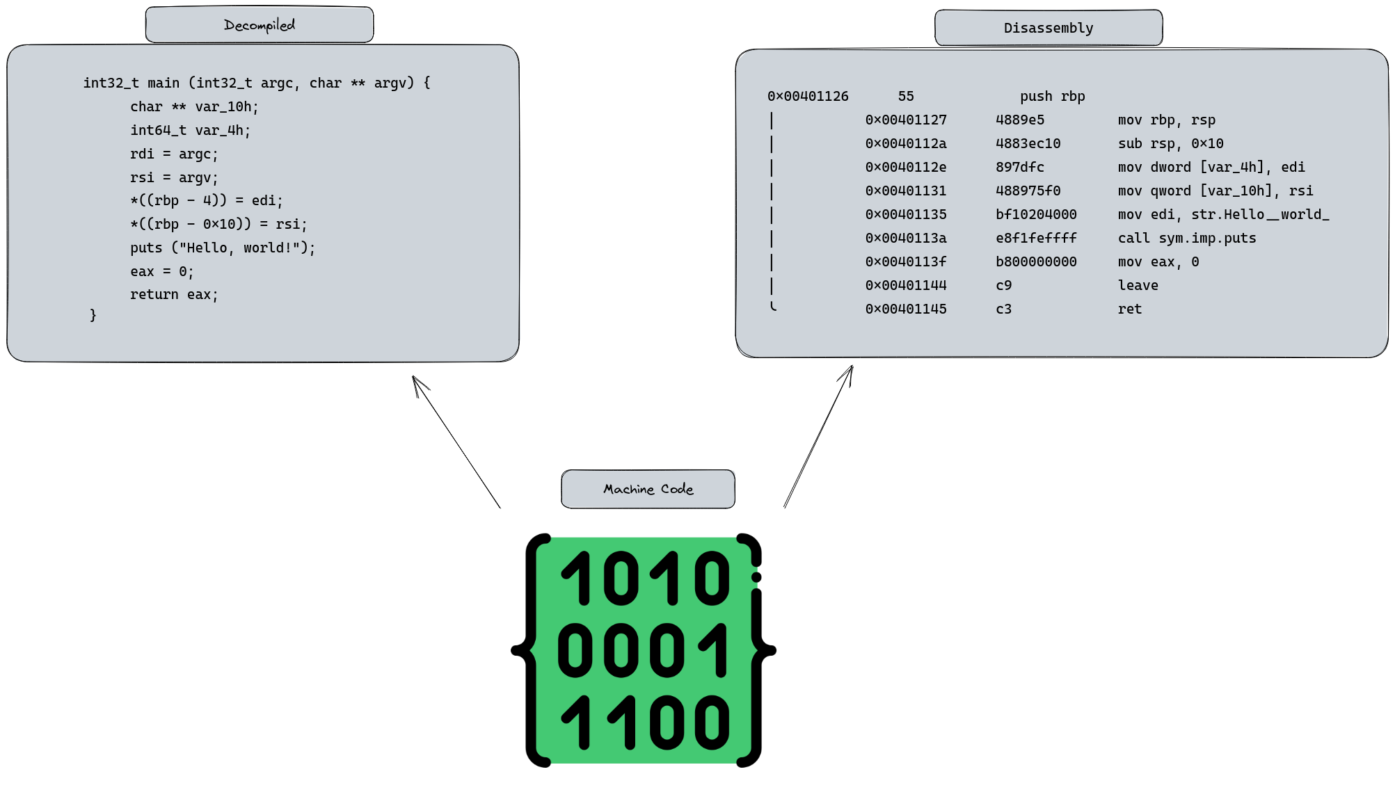 As we navigate through the realm of ELF binaries, it’s essential to familiarize ourselves with the concepts of disassembly and the captivating world of decompilation. While we won’t delve too deeply into the technicalities of disassembly just yet, let’s explore its essence.
