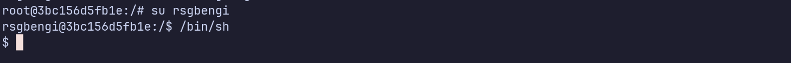 At this point, there is a /bin/sh process inside the container running with UID 1000. From the host’s perspective, that process also belongs to UID 1000 the unprivileged rsgbengi account.