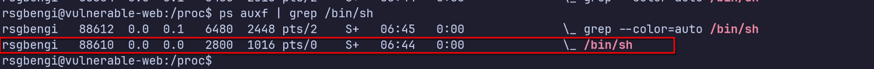 On the host, as the non-privileged user, we can find that shell’s PID:
