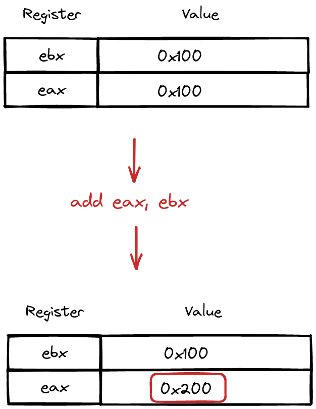 In this elegant move, âaddâ takes the stored values from the rax and rdx registers, orchestrates a seamless addition, and then gracefully deposits the sum into the target register, here elegantly named rax.