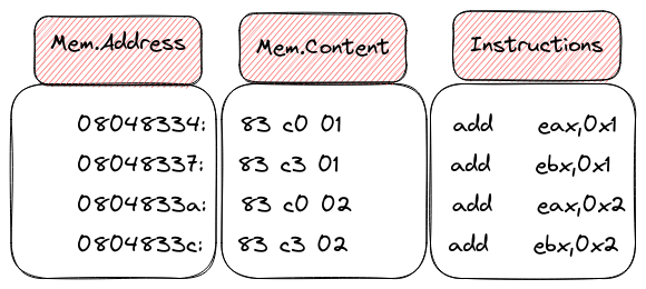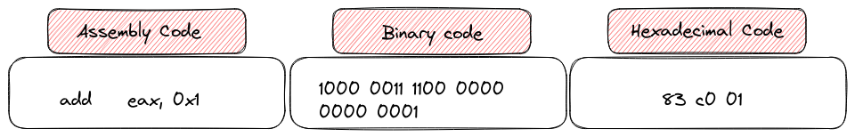 To make these instructions more readable, we opt for a hexadecimal representation rather than the binary format. This switch to hexadecimal isnât just a technical choice; itâs a practical one, enhancing the ease with which developers and analysts can work with and understand these instructions during the debugging or analysis stages.