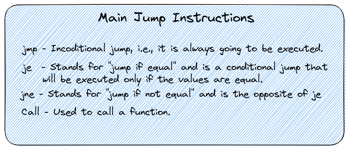 In the intricate realm of assembly, special instructions take the stage, wielding the power to modify the instruction pointerâthe maestro guiding the flow of code execution. Letâs spotlight two primary categories of jump instructions: the unwavering unconditional, like âjmpâ and âcall,â and the nuanced conditional, such as âjeâ or âjne.â