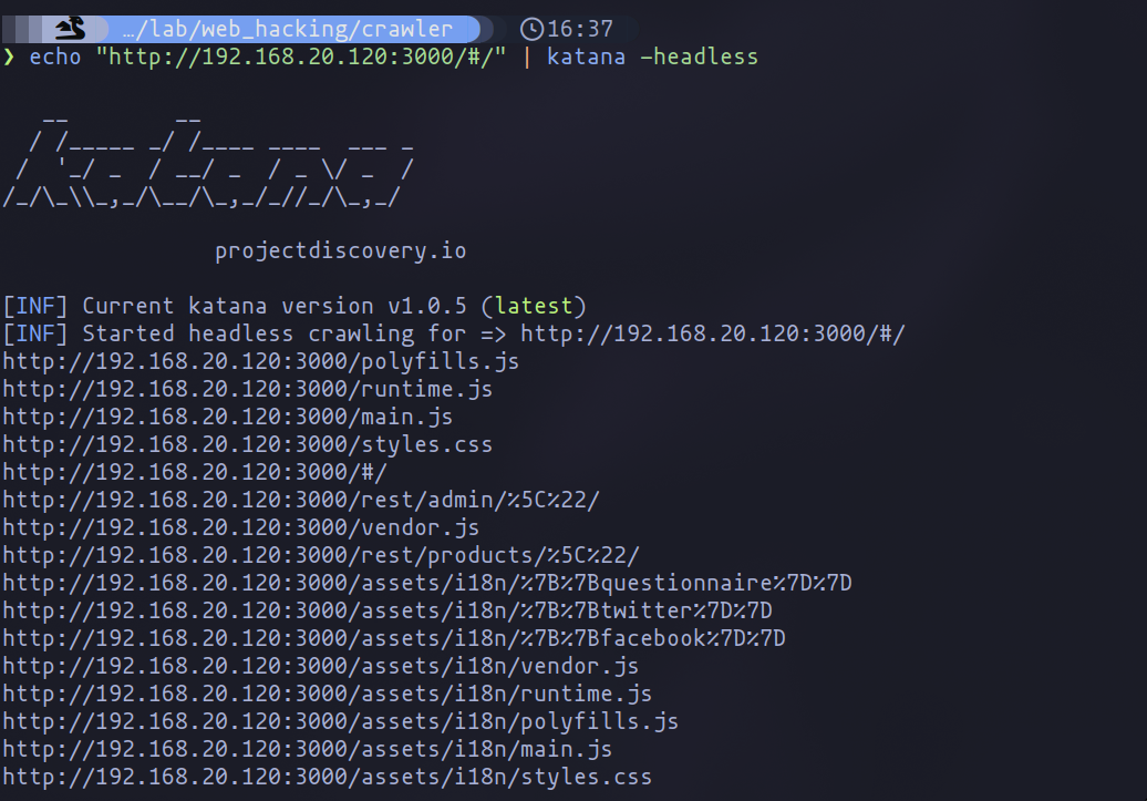 With the groundwork laid and the importance of a detailed web crawl established, engaging Katana becomes our strategic move to unearth even more about our target’s digital terrain. Let’s initiate this journey with a simple command: