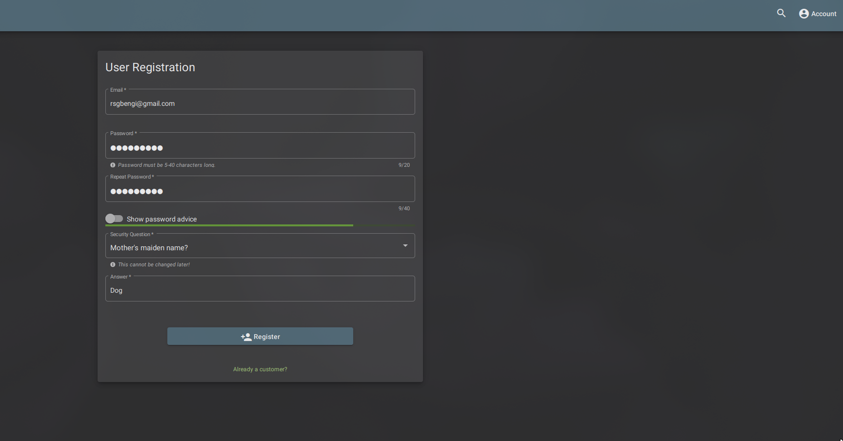 User registration