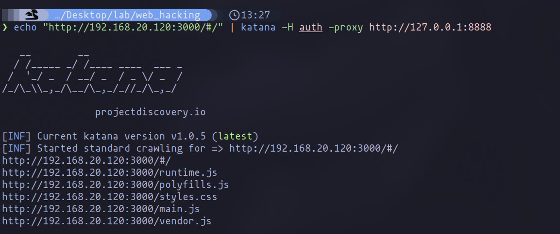 Once the JWT is in hand, the next course of action is to export this token, along with any relevant cookies, into a file. This file then serves as a bridge to the next step of our process. By feeding this information into Katana’s crawling mechanism with the -H argument, we ensure the inclusion of the authentication header in our crawl. To guarantee that the integration works as intended, I recommend using the -proxy argument for debugging purposes. This allows for real-time monitoring of the requests, affirming that the authentication details are correctly applied to the tool’s operations.