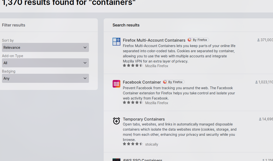 Search in the Firefox store