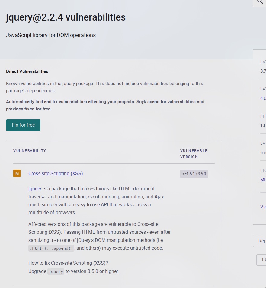 Jquery with vulnerabilities
