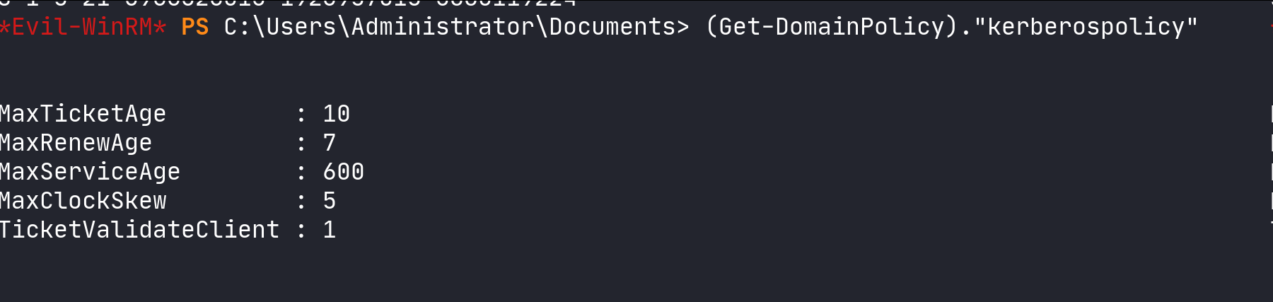 Moreover, PowerView enables us to access the configuration of Kerberos tickets, a key element in managing authentication in Active Directory. Understanding Kerberos configuration is essential as it can reveal vulnerabilities or key security practices. To check this configuration, we use: