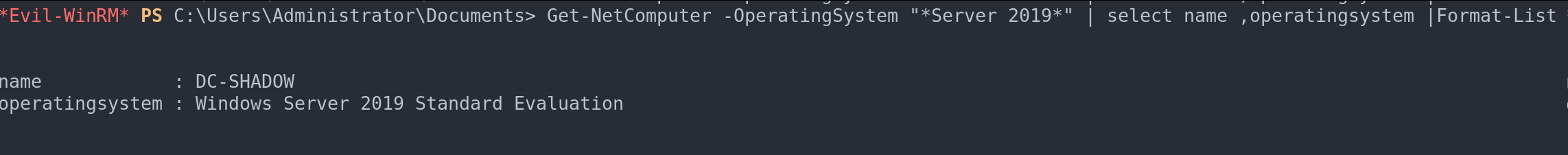Get-NetComputer -OperatingSystem "*Server 2016*" | select name ,operatingsystem |Format-List