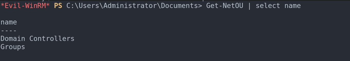 To take a peek into this well-ordered world of OUs, the command Get-NetOU is your key. It’s like having a map that guides you through the various sections of this vast library, providing insights into how the AD domain is segmented and governed. In upcoming discussions, we’ll delve deeper into the interplay between OUs and Group Policy Objects (GPOs), unraveling how they collectively sculpt the security and operational framework of the AD domain.