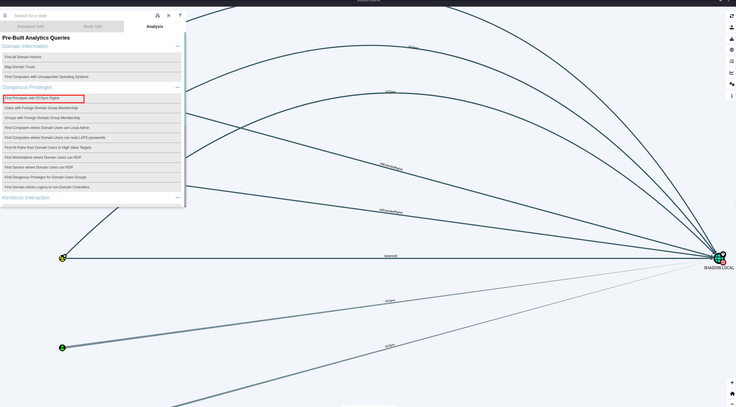 But that’s just the beginning. BloodHound also guides us in finding the most direct and efficient route to the coveted position of a domain administrator. And if you’re contemplating executing a DCSync attack, BloodHound brilliantly illuminates various pathways to accomplish it successfully.