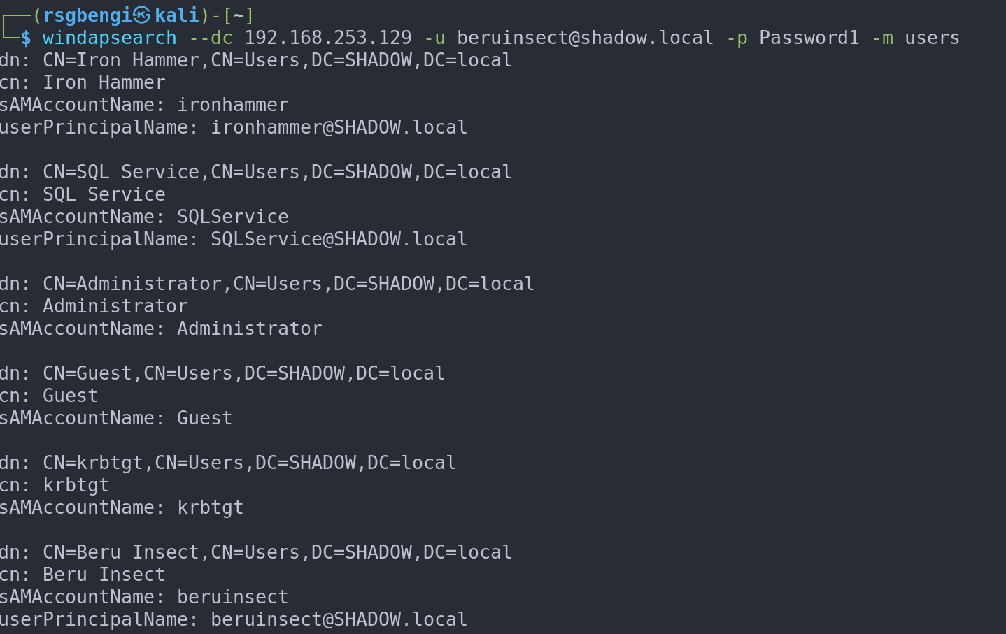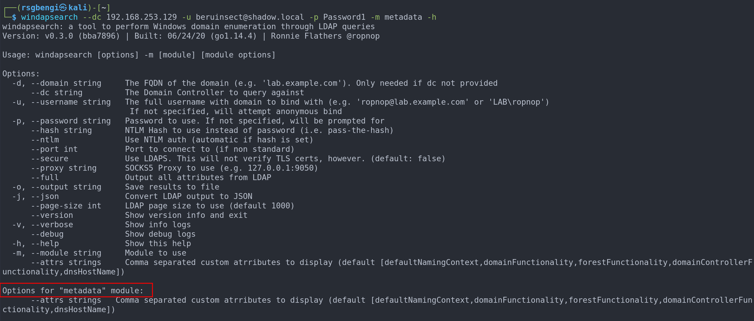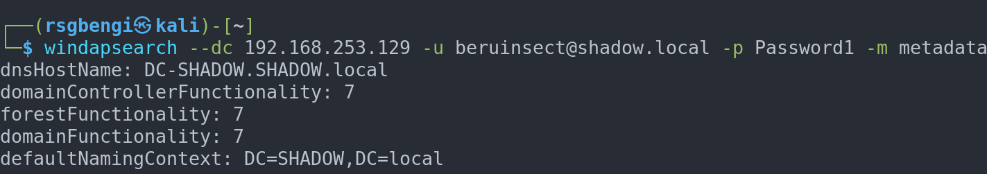 windapsearch --dc 192.168.253.129 -u beruinsect@shadow.local -p Password1 -m metadata