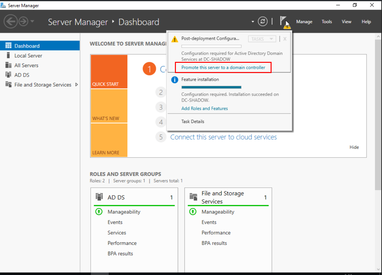 Once the installation wraps up, click on ‘Promote this server to a domain controller.’