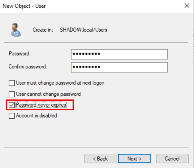 Now, for the fun part - creating a new user. Right-click in the Users unit, select ‘New -> User,’ and fill in the details. Choose a memorable logon name and a not-so-secure password for easy attack practice. Make sure the password doesn’t expire too often for convenience.