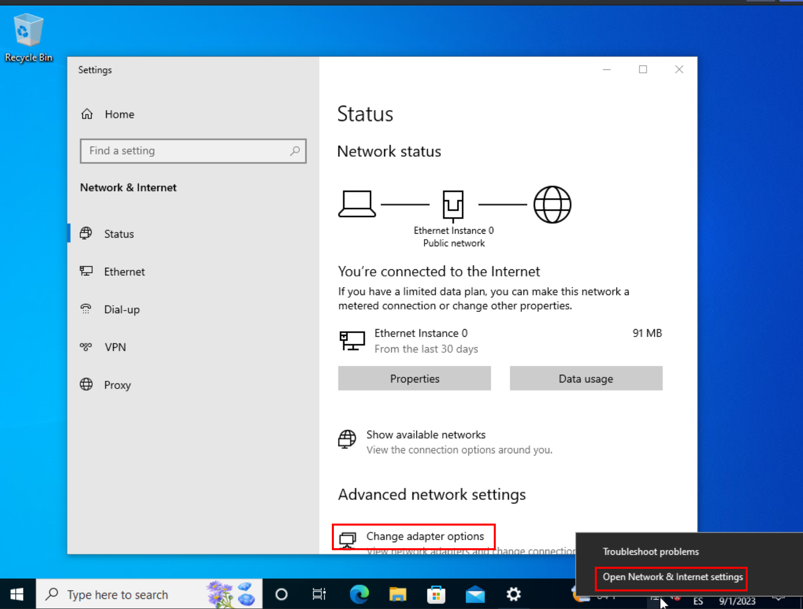 Begin by opening the Windows Internet settings. Here, navigate to “Change adapter options” to modify network configurations.