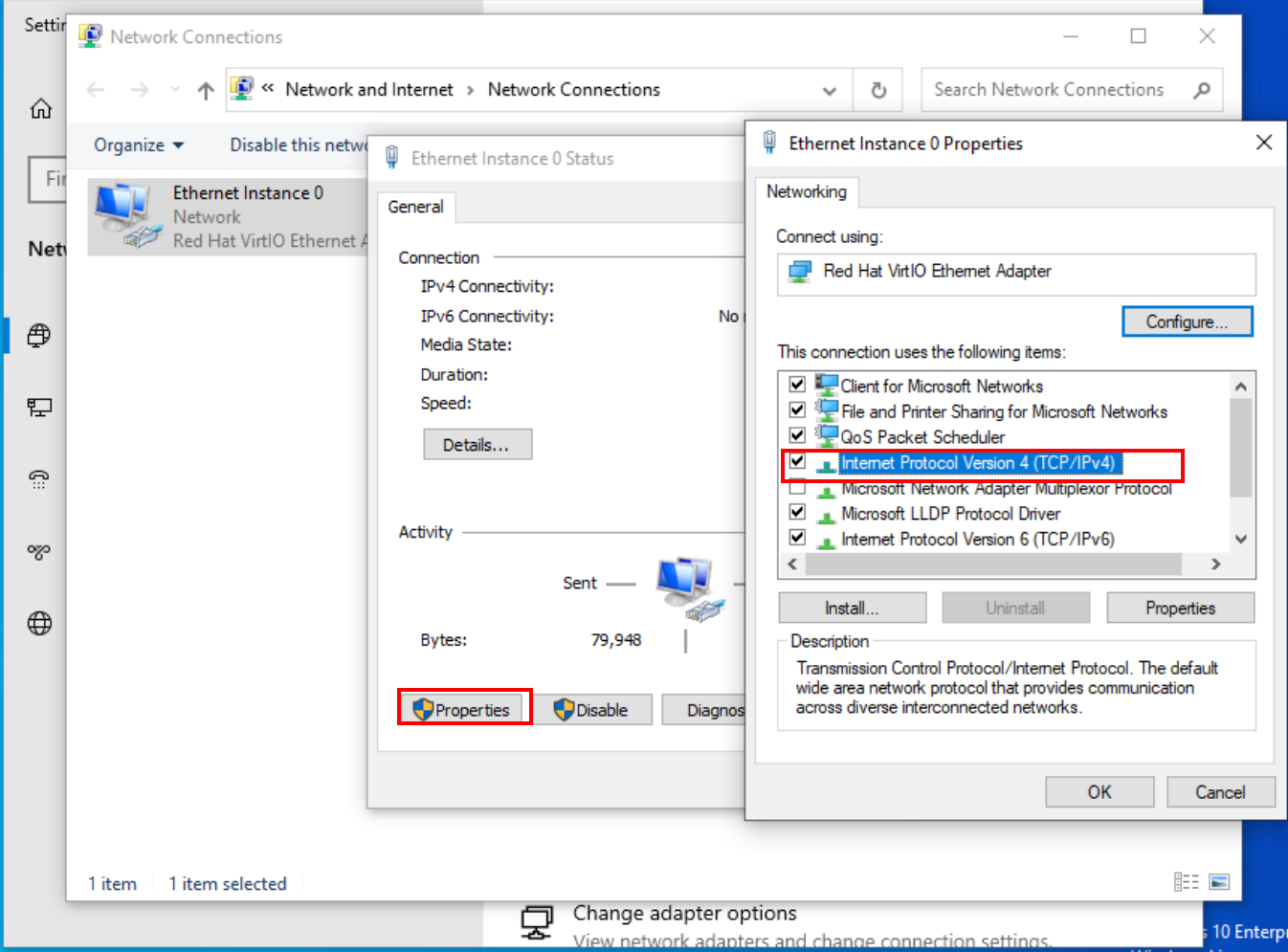 Dive into the settings of Ethernet instance 0. Look for ‘Properties’ and then select “Internet Protocol Version 4 (TCP/IPv4)”.