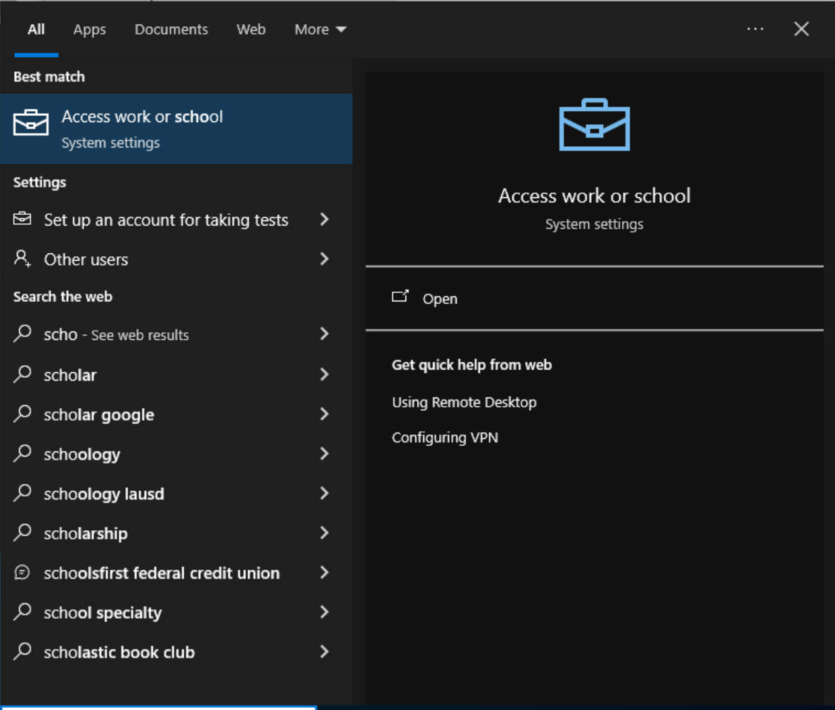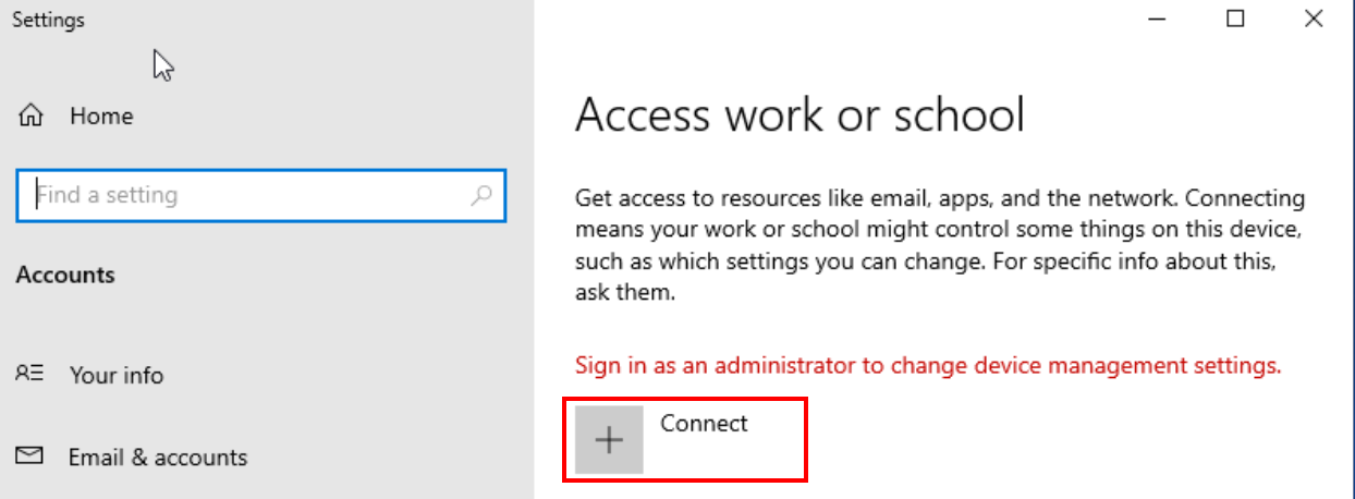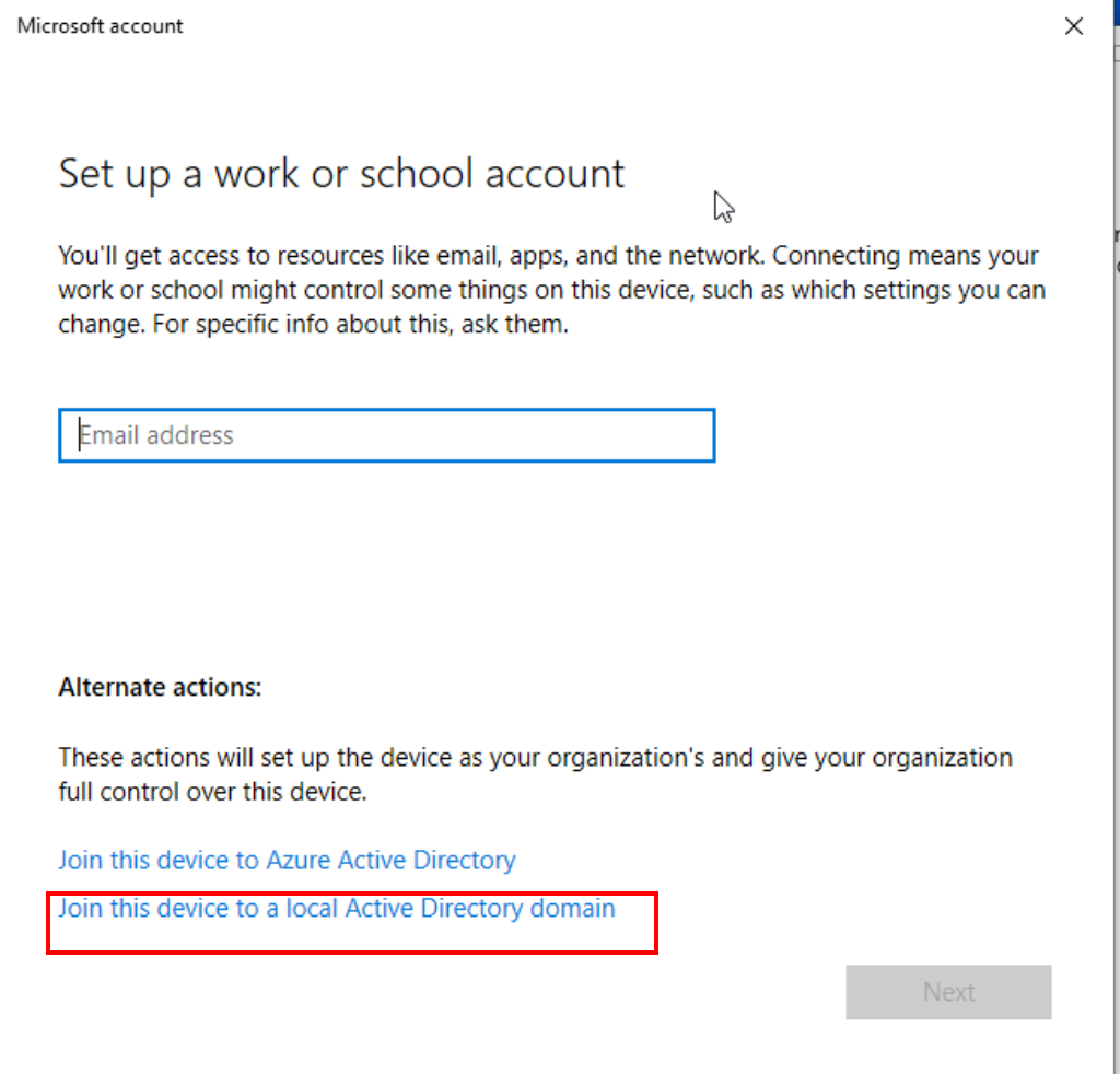 To integrate a machine into your domain, the process is quite straightforward. Begin by searching for “Access work or school” in the Windows search bar. Inside, you’ll find a “Connect” option, kicking off the configuration journey. Here, select “Join this device to local Active Directory domain” to proceed.