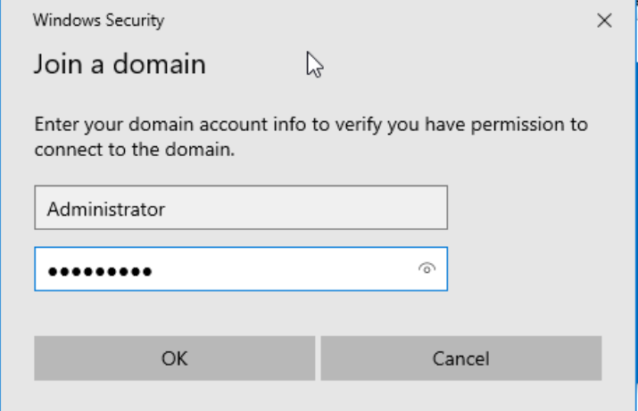 After inputting the domain name, you’ll need to authenticate. Enter the credentials of your domain administrator user, finalizing the connection of the machine to your domain.
