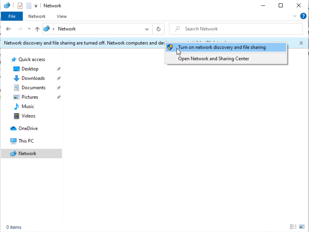 This prompt is our cue to action. By selecting “Turn on network discovery and file sharing”, we ignite the process of activating SMB. This step is more than a mere click; it’s the activation of a crucial service, laying the groundwork for a range of network-based exercises and explorations.