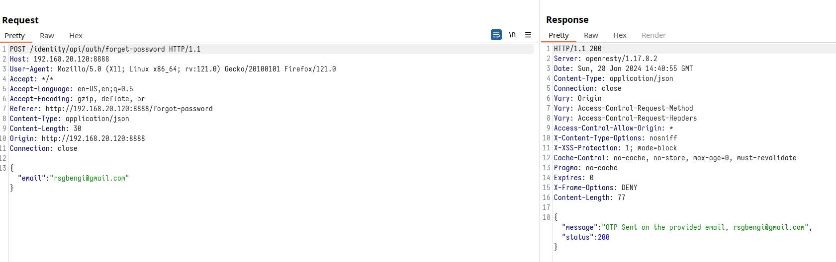 A final word of caution: this vulnerability also opens the door to user enumeration, as the application’s response to non-existent emails unveils potential targets. Moreover, through a brute-force attack using a wordlist of commonly known usernames, malicious actors could potentially identify users of the application, creating an opportunity to change their passwords indiscriminately.
