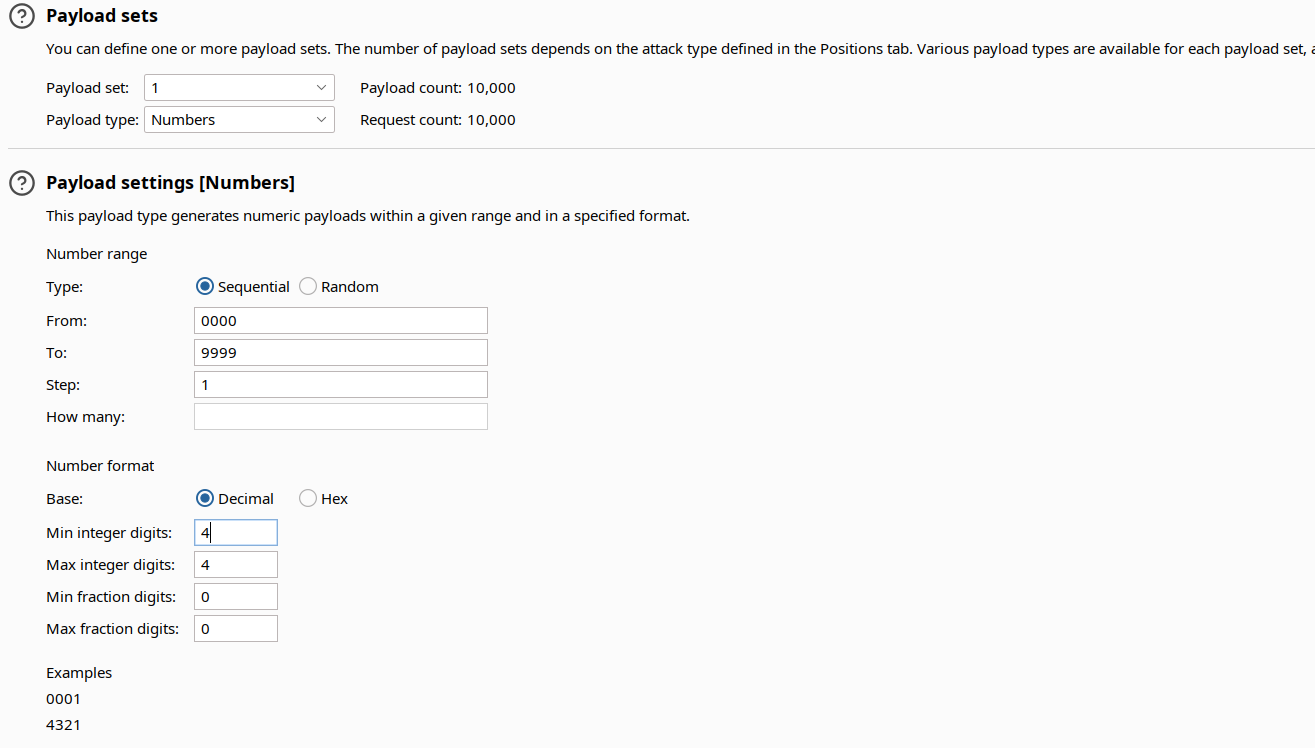 Employing tools like Burp Intruder, we simulate a brute force siege, attempting all combinations from 0000 to 9999, a testament to perseverance and cunning.