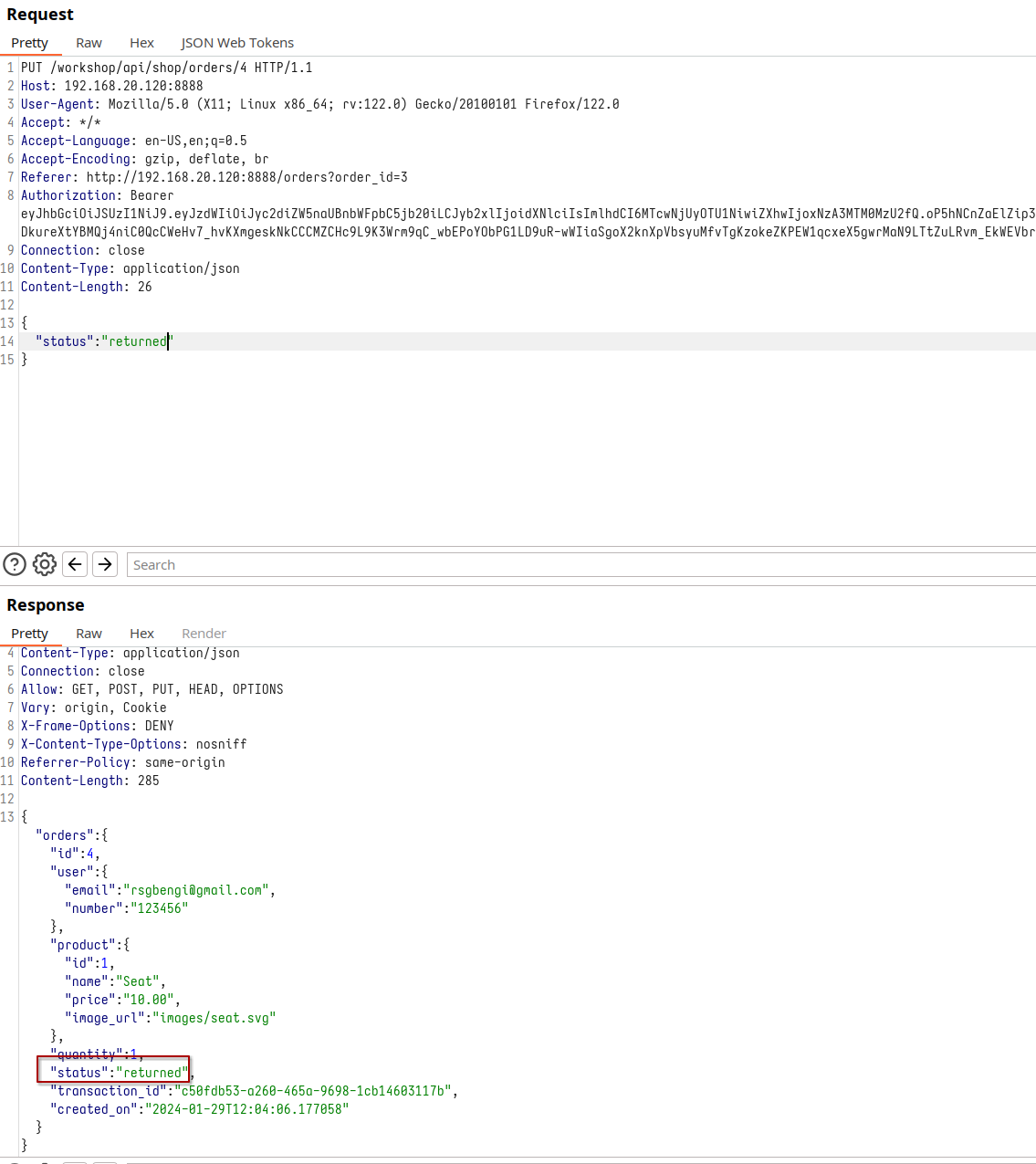 This unexpected turn of events, where altering the status to ‘returned’ results in an unforeseen refund, serves as a remarkable illustration of Mass Assignment in action. It underscores how even a seemingly minor status modification can carry significant financial consequences:
