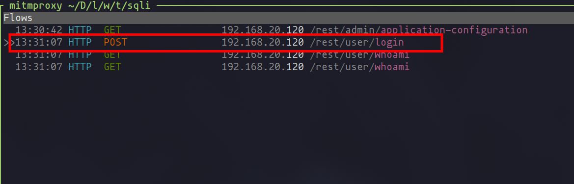 To kick off the template creation, we first need to capture a typical request, such as a login attempt. This task can be accomplished using any proxy tool; in this scenario, I’ve opted for mitmproxy for its ease of use and versatility.