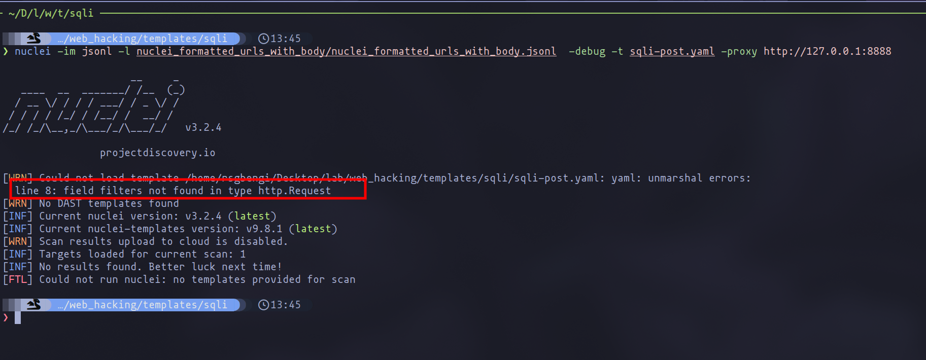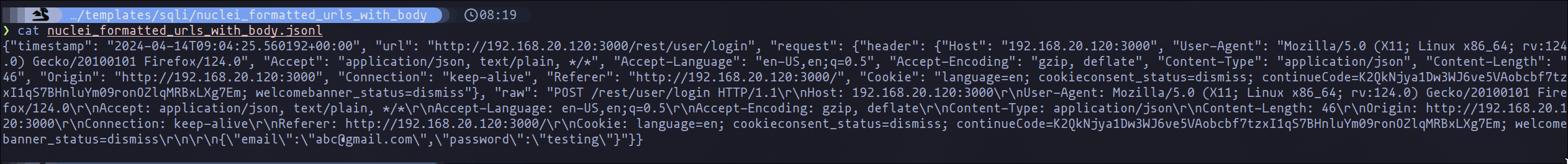 nuclei -im jsonl -l nuclei_formatted_urls_with_body/nuclei_formatted_urls_with_body.jsonl -debug -t sqli-post.yaml -proxy http://127.0.0.1:8888