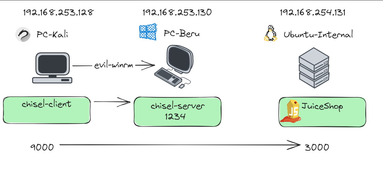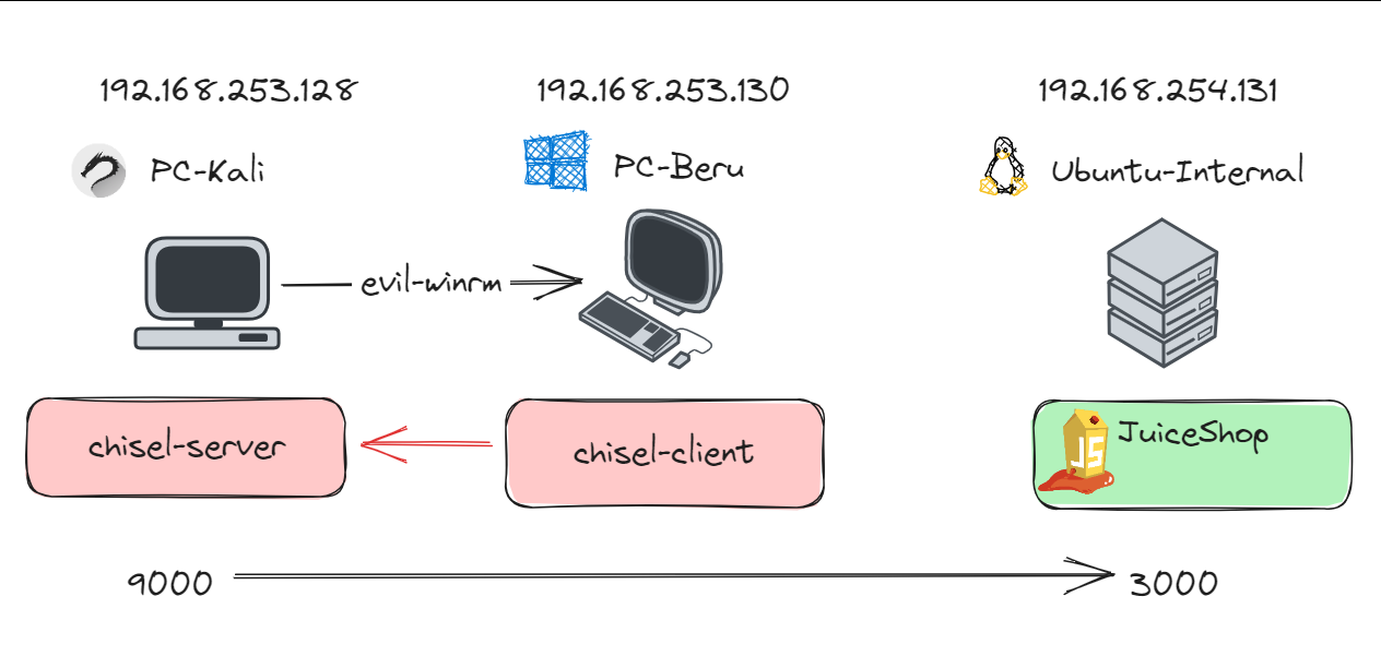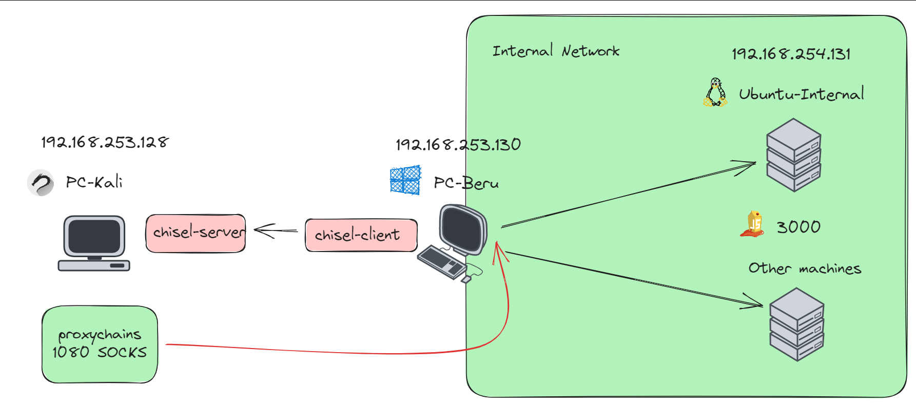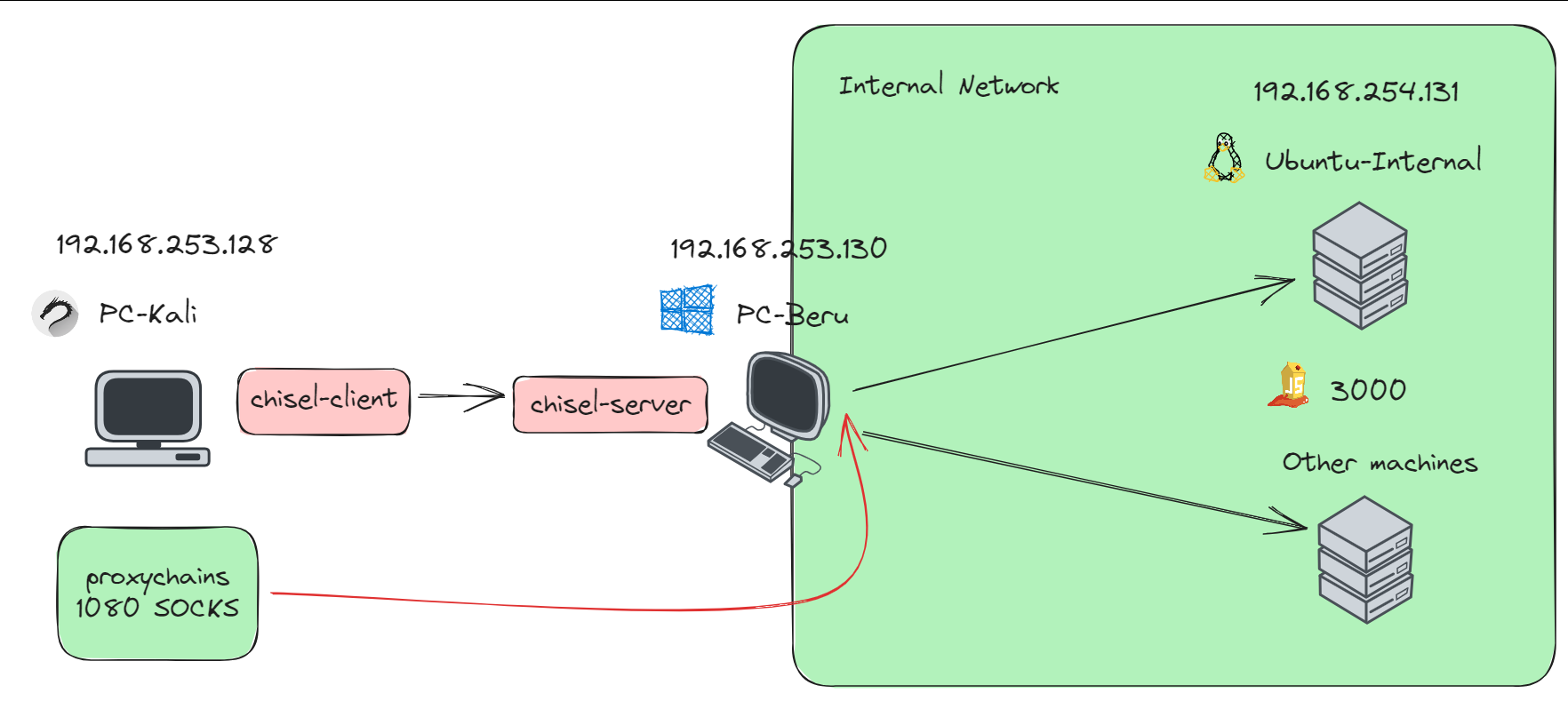 Chisel is a tool that works in a client/server model that will allow us to create network tunnels to access the internal network from a machine that we have previously compromised.