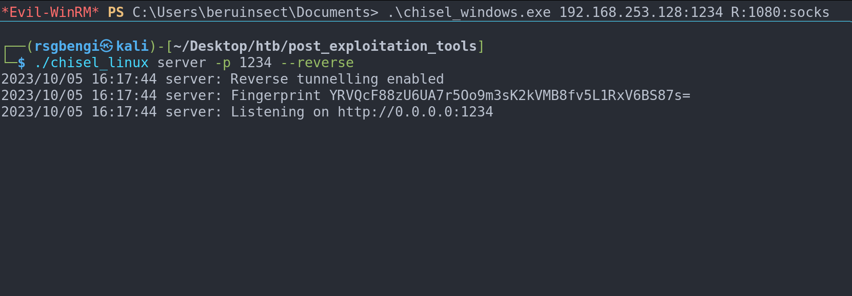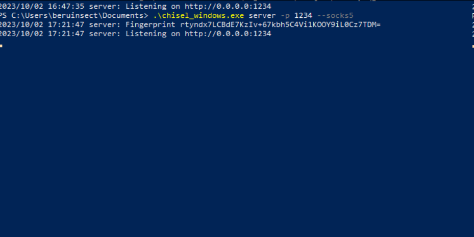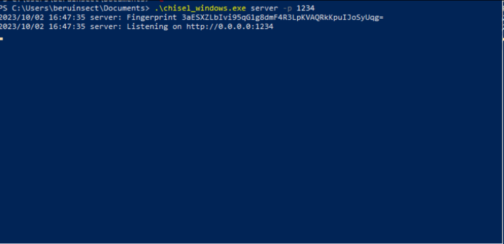 Create a Chisel Server: On the compromised machine, initiate a Chisel server to listen on a specific port (e.g., 1234).