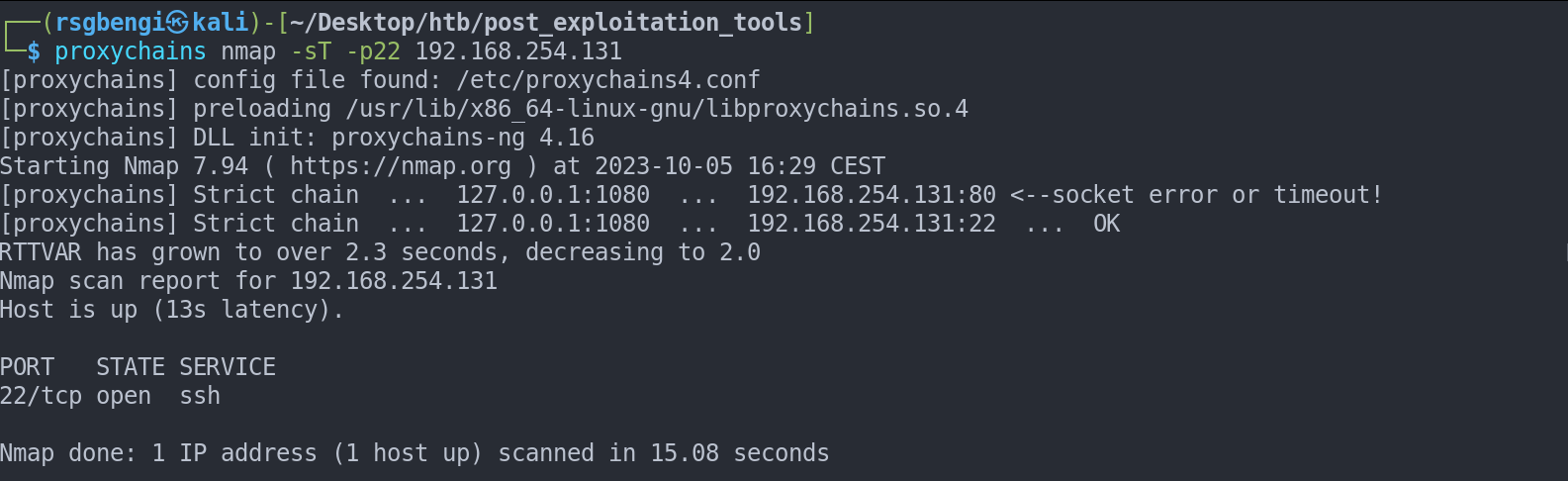 Chisel offers another method for local dynamic port forwarding, requiring a server on the pivot machine and a client on your machine.