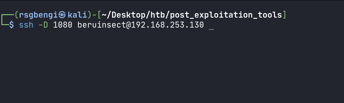 ssh -D 1080 [Username]@[PivotingMachineIP]