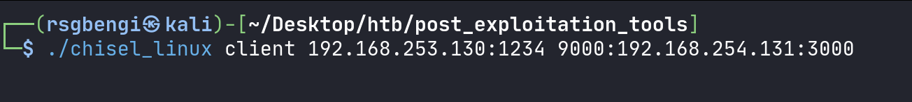 ./chisel_linux client [ServerIP]:1234 R:9000:192.168.254.131:3000