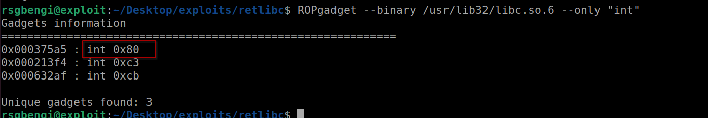 ROPgadget --binary /usr/lib32/libc.so.6 --only "int"