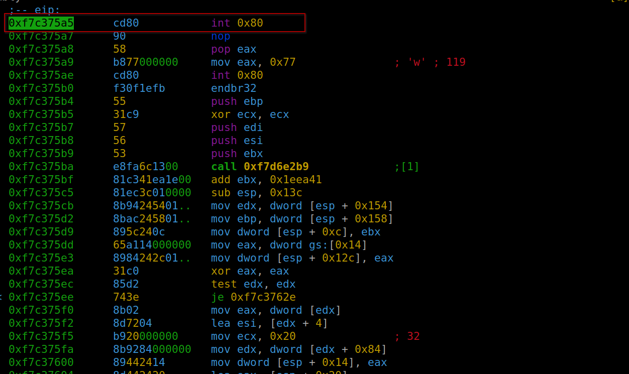 We find int 0x80