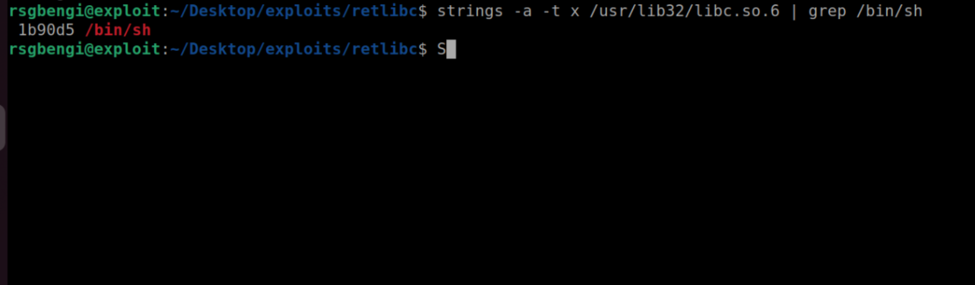 strings -a -t x /usr/lib32/libc.so.6 | grep /bin/sh