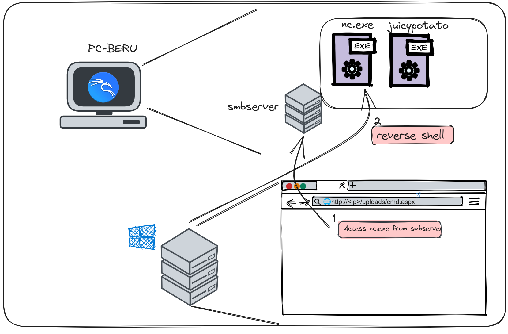 In a cunning move, Beru uploads a webshell, gaining access to the server and uncovering a user with the coveted “SeImpersonatePrivilege.” This revelation sparks joy in Beru, as it means assuming the role of the system user, the highest level of privilege.