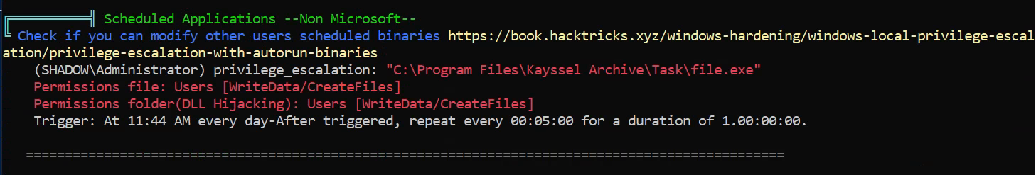 Additionally, as in previous chapters, Winpeas can be employed for a more automated detection of vulnerable tasks: